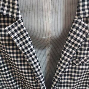 Veronica Beard Black White Gingham Embossed Button Blazer