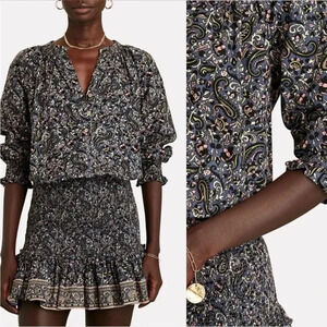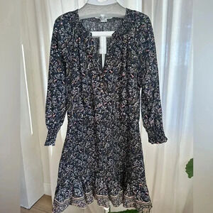 Chic mini dress with floral pattern. Features long sleeves and ruffled hem. Perfect for any occasion.
