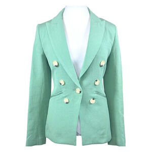 Veronica Beard Blazer Agate Green Emsley Cotton Linen Double Breasted Jacket US6