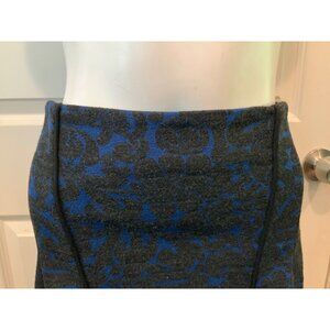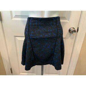 Veronica Beard Blue & Black Baroque Scroll Flounce Mini Skirt, Size Large