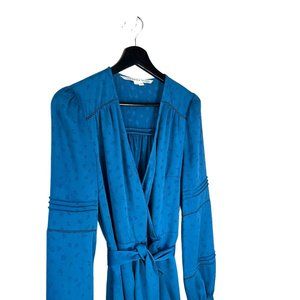 Veronica Beard Blue Miriam Waist Tie Long Sleeve Wrap Midi Dress 4