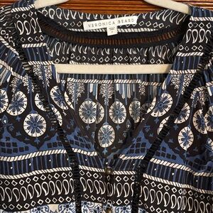 Veronica Beard Blue and Black Geometric Blouse 100% silk