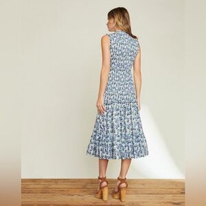 Veronica Beard Blue Verena Floral Smocked Drop Waist Dress