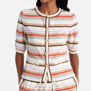 Veronica Beard Brendan Striped Cotton Blend Terry Cardigan Size Small