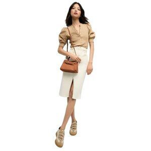 Veronica Beard Breves Midi Jean Denim Skirt Womens 0 Cream Ivory Front Slit Ecru
