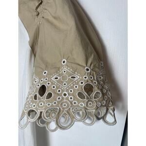 Veronica Beard Briana Embroidered Short-Puffed Sleeve Tee White & Light Khaki M