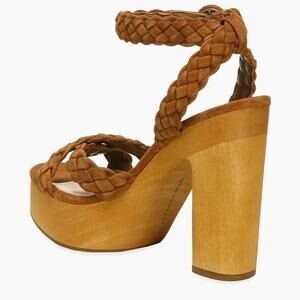 Stylish braided strap design. Chunky platform heel. Adjustable ankle strap.