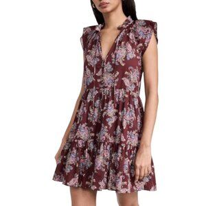 Layered cap sleeves. Tiered skirt. Flounce hemline. A-line silhouette.
