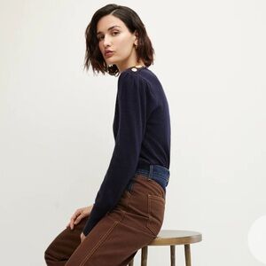 Veronica Beard Blue Button Shoulder Pullover Top.