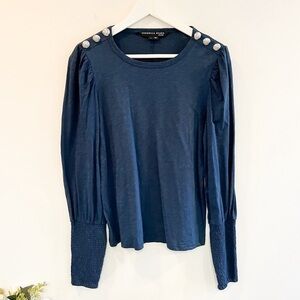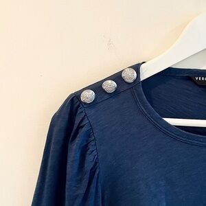 Veronica Beard Button Shoulder Pullover Blue Top Size Medium