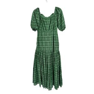 Veronica Beard Cali Off Shoulder Broderie Anglaise Cotton Voile Maxi Dress Green