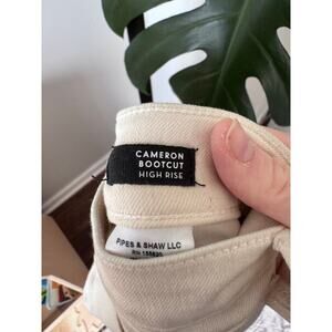 Keywords: Veronica Beard Jeans, Bootcut Jeans, High Rise Denim, Ivory Jeans, Raw Hem, Made in USA, Designer Denim, Classic Fit, Everyday Style, Versatile Pants, Modern Bootcut, Comfortable Jeans