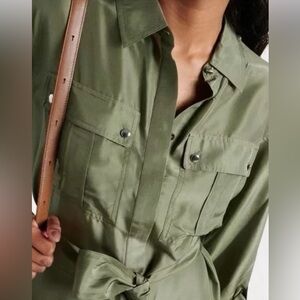 This polished longline shirtdress is cut from rich silk and tethered with a defining sash. Hidden-button placket Spread collar Lined, except sleeves Long sleeves Chest button-flap patch pockets Removable sash 100% silk