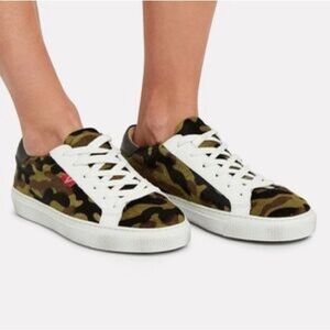 Veronica Beard Camo Green Dyed Calf Hair Low Top Lace-Up Sneakers EUC Size 38