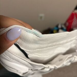 Good condition- has a blue transfer mark on the front thigh area and the inner waistband, rather faint. I have not tried removing.
