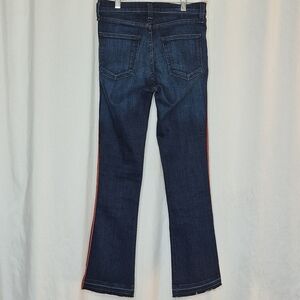 Veronica Beard Carolyn 10" Baby Boot Jeans Navy/Red Leg Stripe Released Hem - 25