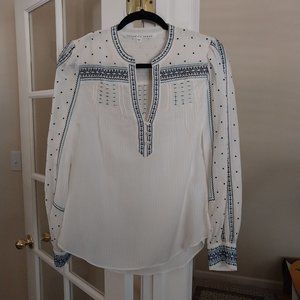 Veronica Beard Carta Embroidered Silk & Cotton Blouse