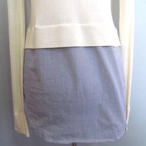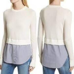 Veronica Beard Cassie Combo Sweater Mix Media Pullover Top Blouse Cream Stripe S