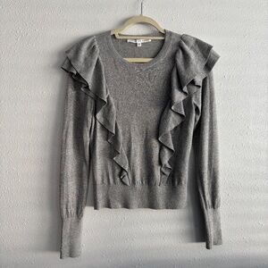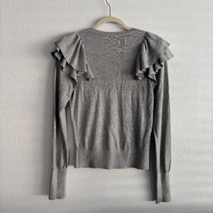 Veronica Beard Centre Ruffle Metallic Silver Sweater