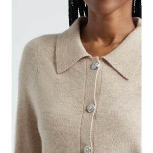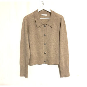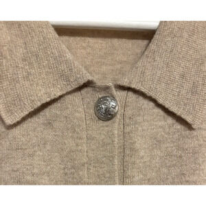 Veronica Beard Cheshire Cashmere Sweater Large Tan Buttons Collar