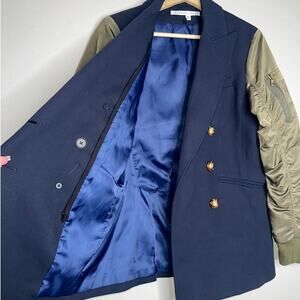Veronica Beard Clausen Mixed Media Dickey Blazer/Jacket Navy/Olive Green Size 2