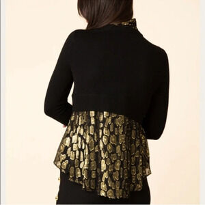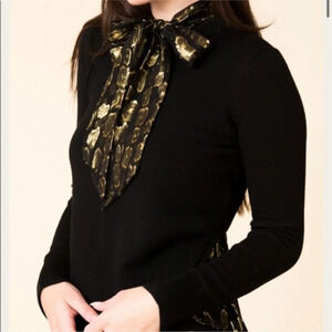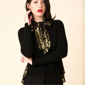 Veronica Beard Concord Wool Sweater High Low Detachable Gold Silk Tie Neck Bow Black XS