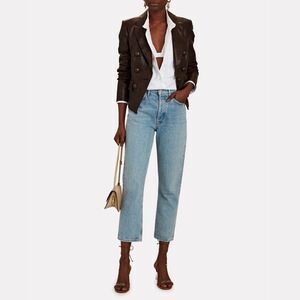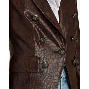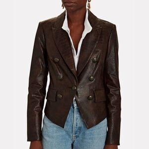 Veronica Beard Cooke Dickey Cropped Brown Faux Leather Jacket Blazer