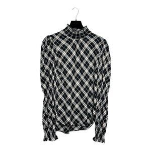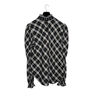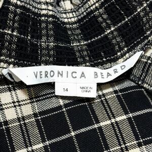 Veronica Beard Corbie Plaid Blouse Black Ecru Metallic Size 14