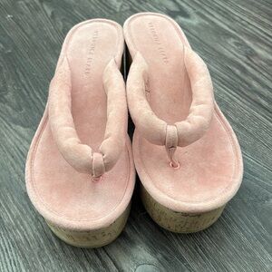 Veronica Beard Cork Platform Wedge Flip Flop Sandal in Pink Suede