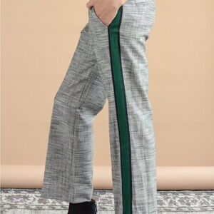 Stylish gray plaid pants. Features green side stripe. Perfect for a chic look. Made in the USA fabric content viscose polyester elastane in excellent condition . Dry clean only.