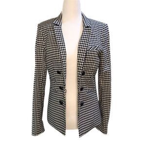 Veronica Beard Cottage Double Breasted Blazer Gingham Size 2 Black White Jacket