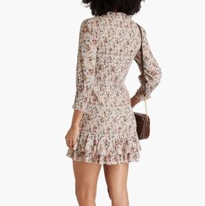 Veronica Beard Cream Floral Smocked Ruffle High Neck Farha Mini Dress Bohemian