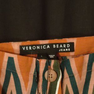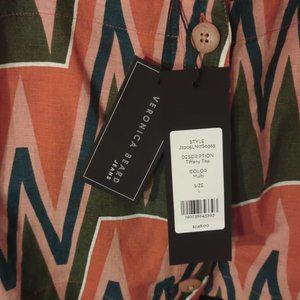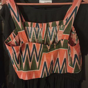 Brand new! Veronica Beard Crop Top (US Women's Large). Orange / Green. Square neck. Wooden button-front closure. Fixed straps. 57% linen/43% cotton