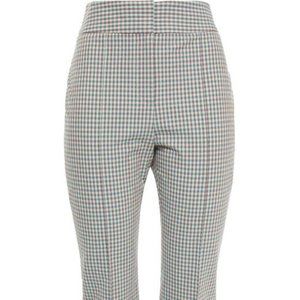 Slim-leg pants Gingham Seersucker Cotton-blend Stitched front creases Cropped Two back welt pockets High-rise cut Concealed hook, button and zip fastening at front Side slit hemline Stretchy fabric Mid-weight fabric Dry clean. Elastane 4%, Cotton 96%.