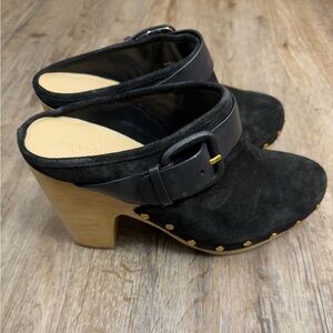 Flattened studs highlight the edge of these rustic suede clogs, adding interest to a vintage-inspired silhouette.
