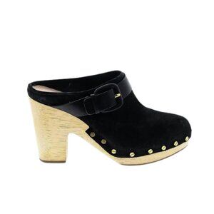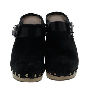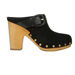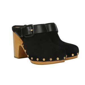 Veronica Beard Dacey Buckled Studded Black suede Stacked Heel Mule Clogs. 9.5