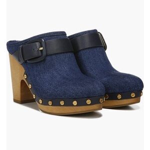 Veronica Beard Dacey Denim Clog wooden heel clogs