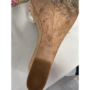 Veronica Beard 'Dali' Brown Raffia Wedge Sandals Size 6.5: leather/raffia upper, open toe, slip-on style.