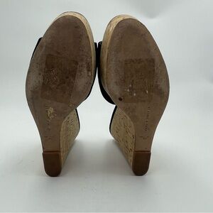 Stylish black wedge sandals featuring a cork heel. Perfect for casual outings. Lightly used excellent condition