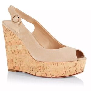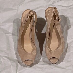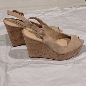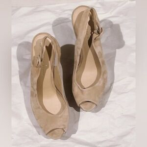 Veronica Beard Dali Suede Slingback Peep-Toe Wedge Sandals Sand Size: 8.5 NWOB