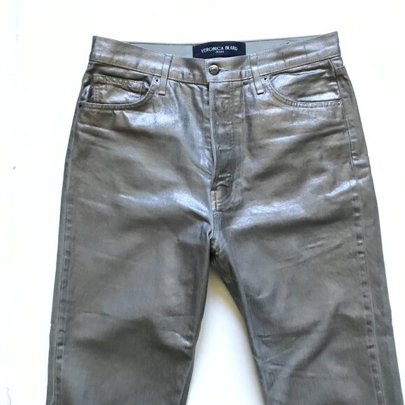 Veronica Beard Daniela High Rise Straight Leg Jeans Womens 29 Silver Coated Pant