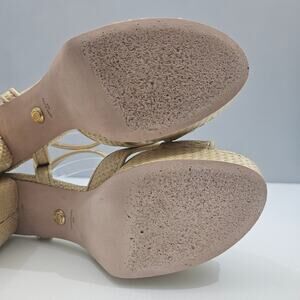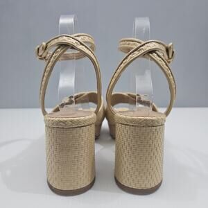 Veronica Beard Danika Sandal Women 9 Natural Raffia Woven Block Heel Ankle Strap