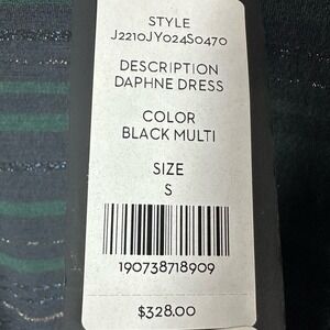 Veronica Beard Daphne Metallic Stripe Ruched Metallic Dress Black Green Small