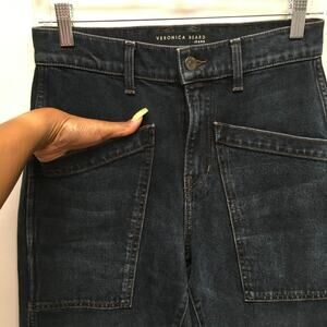 Veronica Beard Dark Ink Denim Charlie Barrel Leg High Rise Crop Jeans 25 $298