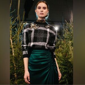 Veronica Beard Deana Embellished Plaid Crew Neck Sweater