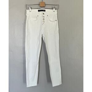 Veronica Beard Debbie Ankle Skinny Jeans 25 High Rise Button Fly White Stretch