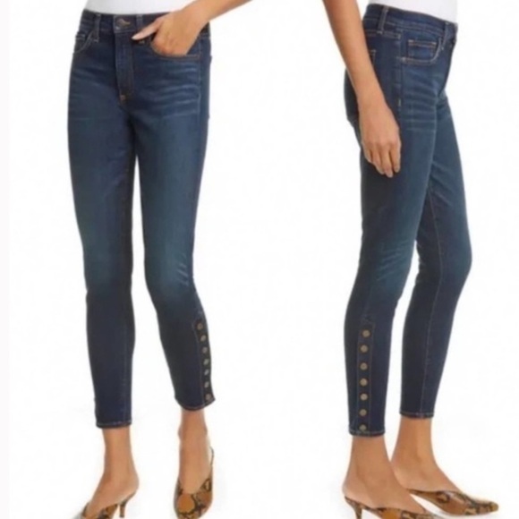 Veronica Beard Debbie High Rise Skinny Jeans Snap Button Side Vent