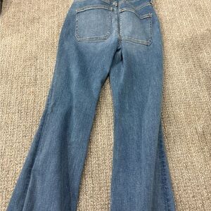 Stylish denim jeans with a wide leg flare. Perfect for a chic look.