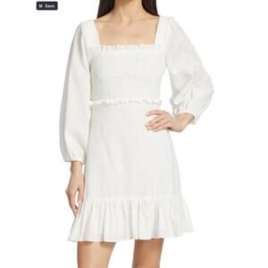 Veronica Beard – Denise White Smocked Long Sleeve Eyelet Mini Dress