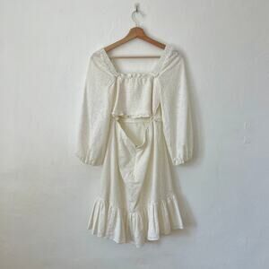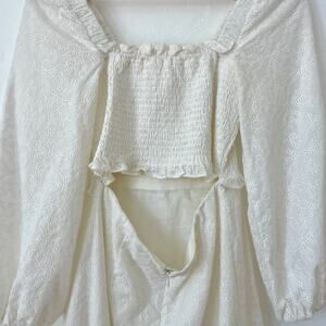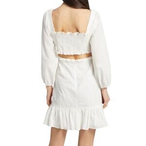 Veronica Beard – Denise White Smocked Long Sleeve Eyelet Mini Dress